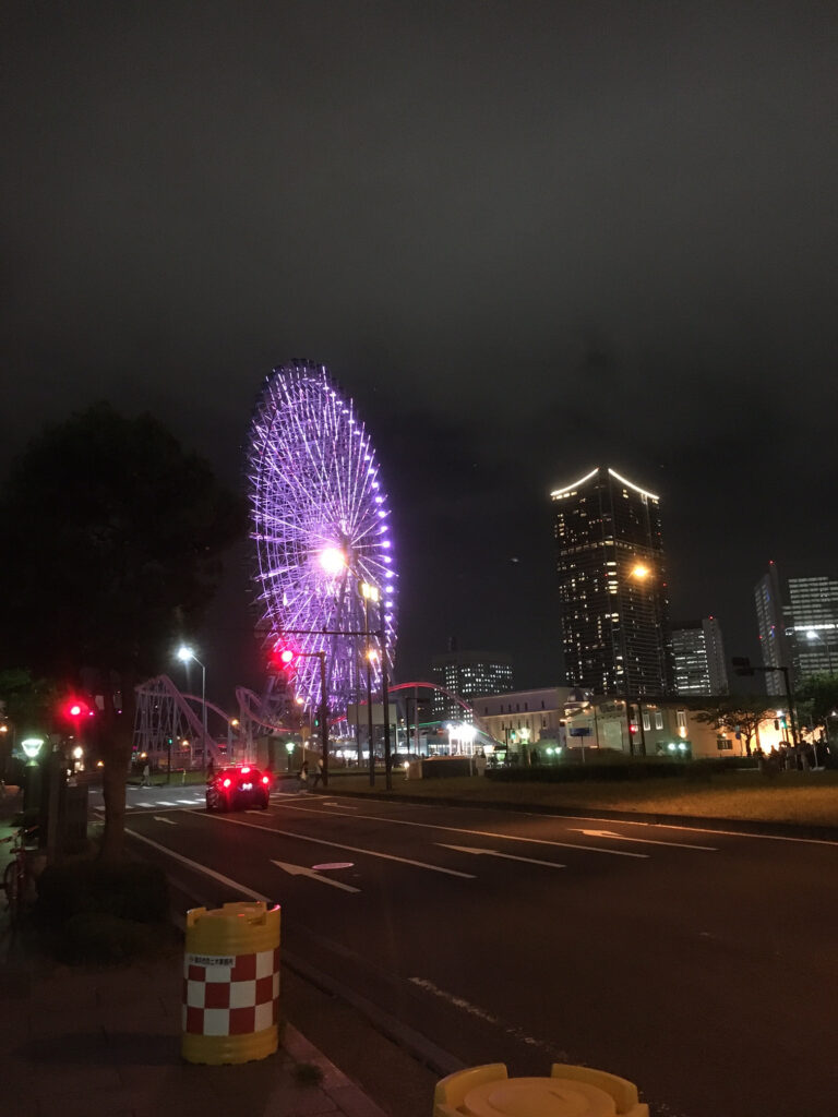 それにしても会場のみなとみらいがある横浜は大きな街ですが、すぐ隣に大きな海がドカンとありますし、そばには遊園地もあり夜景を見ると仕事を忘れます(写真)。ビルだけの大都会と違い殺伐とした雰囲気は無く、何か心にうったえられるものがあります。神戸もそうですが、海がそばにあると歌謡曲に出てきやすいのはそのせいでしょうね。