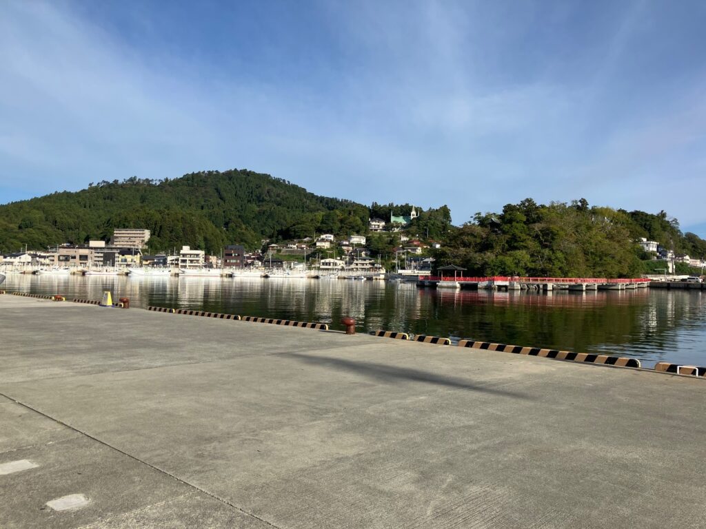 開催されたのは海のそばの丘に建つホテルで、そこから見える海は爽やかな秋の日差しの中、穏やかな内湾に群青の凪を湛える普段通りの姿でした(写真)。街は空き地だらけのままですが、それはそれで整備が進み、よくあった重機はどこにも見当たりませんでした。その日の夜は「じゃらん」で東北のホテルランキングで常に上位に出てくる、「網元の宿 ホテル磯村」(写真)に宿泊しました。このホテルはランキング通り食事の質も量もサービスもすごいです!